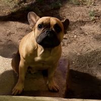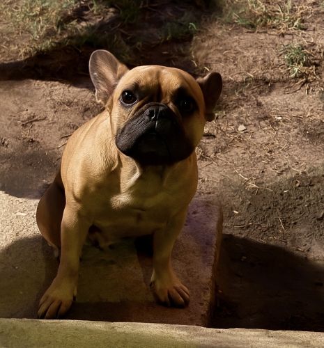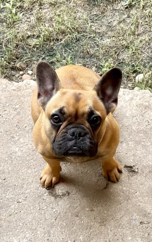 Breed : french bulldogSex : femaleSpayed : yesAge : 2-5 yearsWeight : 21 to 30 lbs.Size : mediumColor : dark fawn+ medium blackPattern : SolidCollar : noTag : noTattoo/Microchip : 985113001307925Eye Color : dark brownEar Size : mediumEar Shape : rose shapedNose Color : blackTail Shape : curvedHow Tail Carried : otherCoat : shortOther : Black Mask, white mark on chest