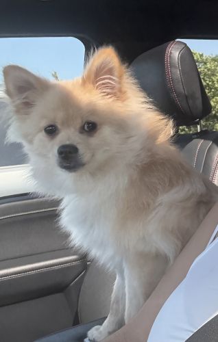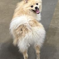 Breed : pomeranianSex : maleSpayed : noAge : 6-18 monthsWeight : less than 10 lbs.Size : smallColor : blond+ white