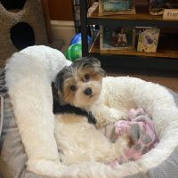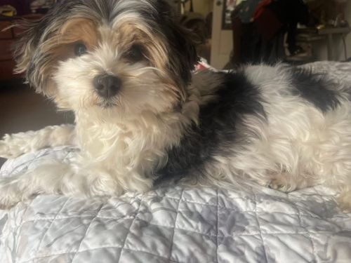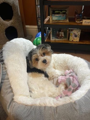 Breed : havaneseSex : femaleSpayed : yesAge : 2-5 yearsWeight : 11 to 20 lbs.Size : smallColor : light white+ medium brown+ medium blackPattern : MixedCollar : noTattoo/Microchip : TattooEye Color : dark hazelEar Size : smallEar Shape : floppyNose Color : blackHow Tail Carried : downCoat : longOther : Looks ungroomed for winter cut