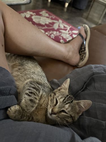 Breed : american shorthair, other/unknownSex : femaleSpayed : noAge : 18-24 monthsWeight : 1 to 5 lbs.Size : smallColor : medium black+ medium grayPattern : StripedCollar : noTag : no