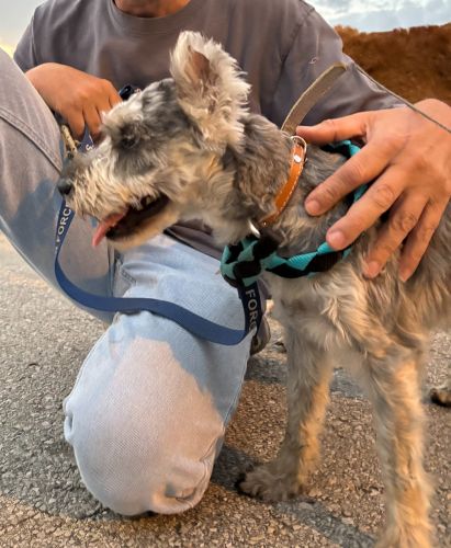 Breed : schnauzerSex : maleSpayed : noAge : 2-5 yearsWeight : 11 to 20 lbs.Size : smallColor : light gray+ light whiteCollar : yesCollar Color : brownCollar Type : leatherTag : yesTag Type : rabiesTattoo/Microchip : 991003002563464Ear Size : smallEar Shape : croppedNose Color : blackTail Shape : dockedCoat : medium