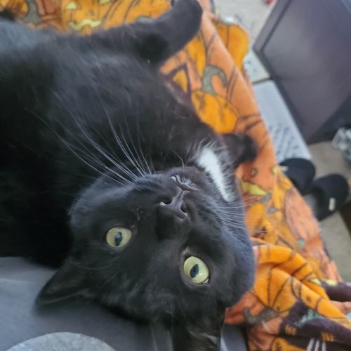He has been gone since October 30. He is a chubby, sweet black cat with white in collar and on belly. He is a talky/meowy little friendly boy, approx 16 years old.