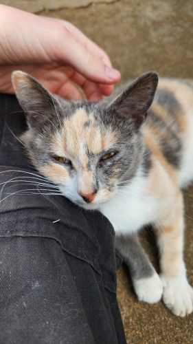 Breed : tortoiseshell persianSex : femaleSpayed : noAge : 6-18 monthsWeight : 6 to 10 lbs.Size : smallColor : light white+ light tan+ dark grayPattern : TortoiseshellCollar : noEye Color : light yellowEar Size : mediumEar Shape : tips roundedNose Color : same as coatTail Length : mediumTail Shape : fluffyCoat : short hairOther : We recently rescued her and found out she is pregnant, I just want her safe and home