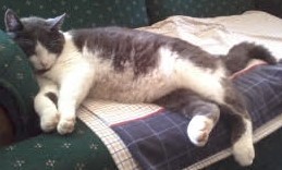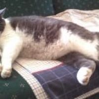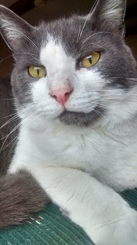 Breed : unknown breed, other/unknownSex : maleSpayed : yesAge : over 10 yearsWeight : 11 to 15 lbs.Size : mediumColor : medium gray+ light whitePattern : UnspecifiedCollar : noTattoo/Microchip : noneEye Color : medium yellowEar Size : mediumEar Shape : normal shapeNose Color : pinkTail Length : mediumTail Shape : straightCoat : short hairOther : He is gray from his eyes to the tip of his tail, and down his sides, and back legs. He is white underneath from his nose to the inside of his back legs, and down his front legs.