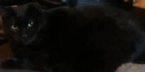 Breed : unknown breed, other/unknownSex : femaleSpayed : yesAge : over 10 yearsWeight : 6 to 10 lbs.Size : mediumColor : dark blackPattern : SolidCollar : noEye Color : light greenEar Size : smallNose Color : blackTail Shape : straightCoat : short hairOther : One ear is deformed
